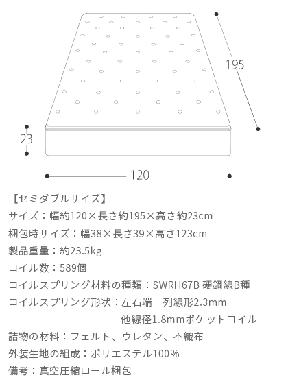 関連カテゴリ: マットレス > セミダブルマットレス | オリジナル家具 > ベッド・寝具(オリジナル家具)