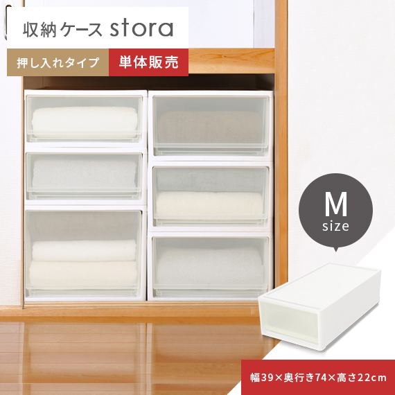 「自分の洋服量に合った収納スペースを作りたい」「押し入れやクローゼットを効率良く使いたい」などのお悩みをお持ちの方にオススメの収納ケース”stora”全5タイプと豊富なサイズ展開ですので、かさの小さい靴下から厚みのあるセーターまで自分の収納したい物にぴったりなサイズをお選び頂けます。またサイズ展開に加え、一つひとつ独立したタイプとなっておりますので、最適なサイズ、最適な数をお選び頂く事で収納スペースを無駄なく使って頂けます。さらに積み重ねるスタッキング式を採用した為、洋服の量が増えてしまった時も簡単に追加が可能。追加の際も同じ収納ケースを使うことで見た目もすっきり綺麗♪押し入れやクローゼットだけでなく普段デッドスペースになりがちなベッド下などにも最適。空間を有効活用して自分にぴったりの収納空間をお作り頂けます。