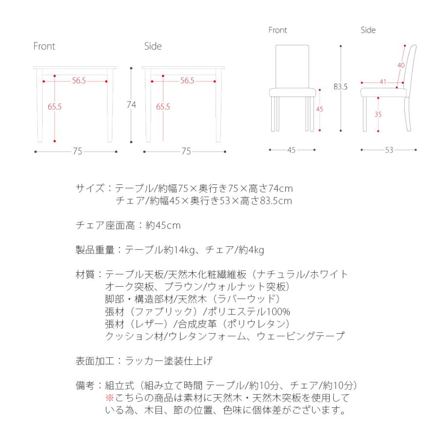 【セット】[幅75] 2人用 3点セット ダイニングテーブルセット