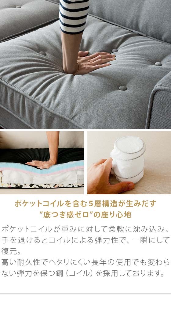 リビングソファ 北欧モダン ポケットコイル ファブリック