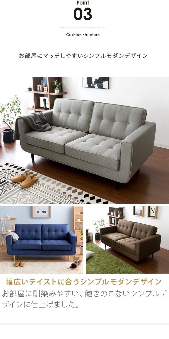 くるみボタン 2.5人掛け 2人掛け 北欧 シンプル
