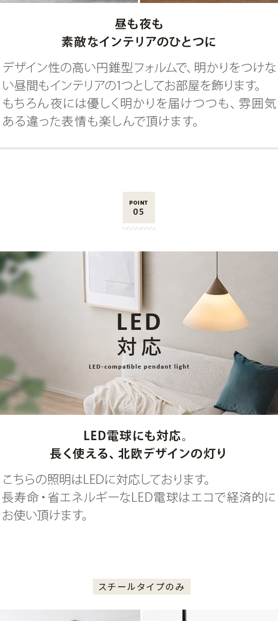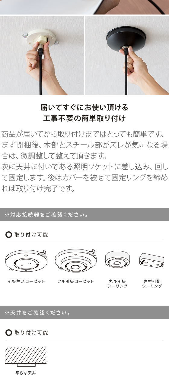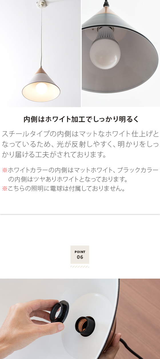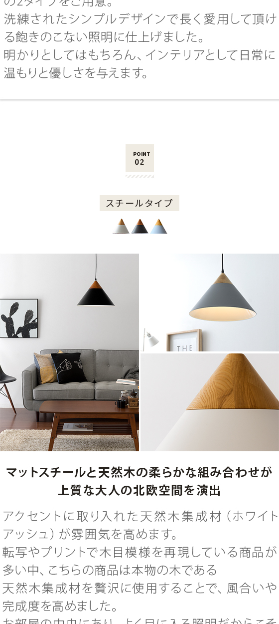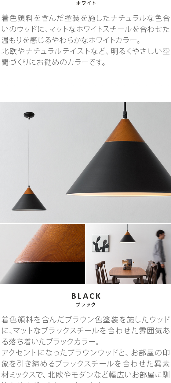 スチールシェードをベースに、アクセントに天然木集成材(ホワイトアッシュ)を組み合わせたスチールタイプ。ガラスシェードを使用したガラスタイプの2タイプをご用意。