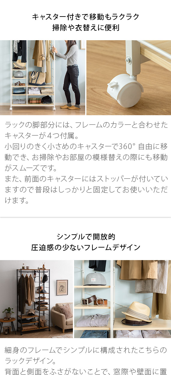 コートハンガー 衣類収納 キャスター付き 棚付き