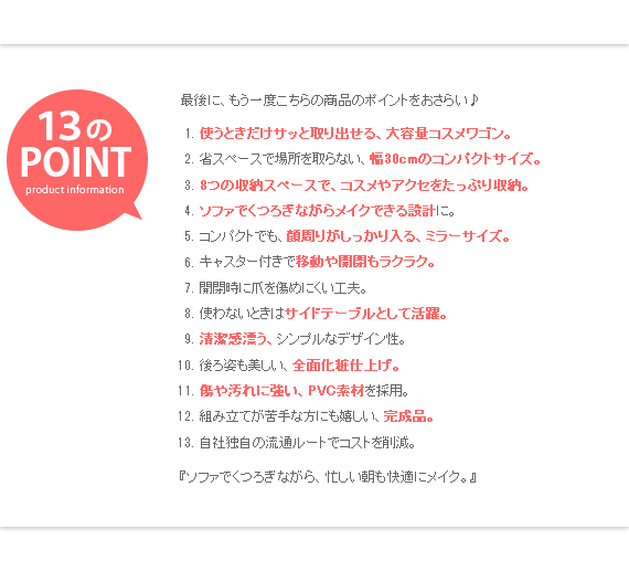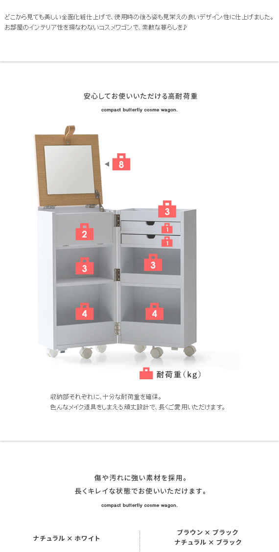 [幅30] コンパクトコスメワゴン Karen〔カレン〕
