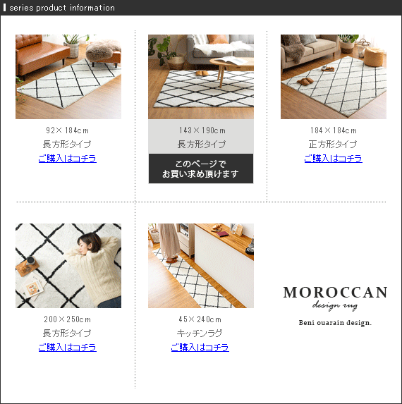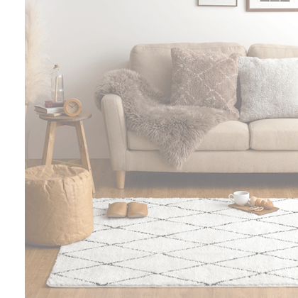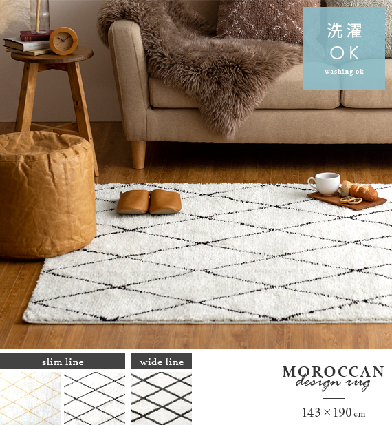 ベニワレン風モロッカンデザインラグ 143×190cm / 雑誌などで取り上げられることも多い、シンプルな直線で描かれたデザインが目を惹くベニワレンラグ。そのベニワレンからインスパイアされ、味わい深い独特のデザインはそのままに、より快適にお過ごしいただけるサラふわ気持いいシャギーラグができました♪