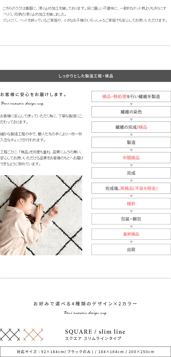 [184×184/正方形] ベニワレン風ラグ 洗える 滑り止め加工 床暖可 ホットカーペット対応