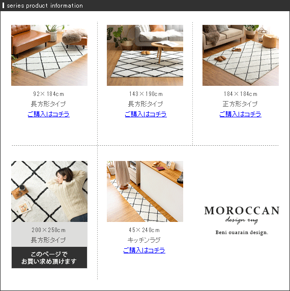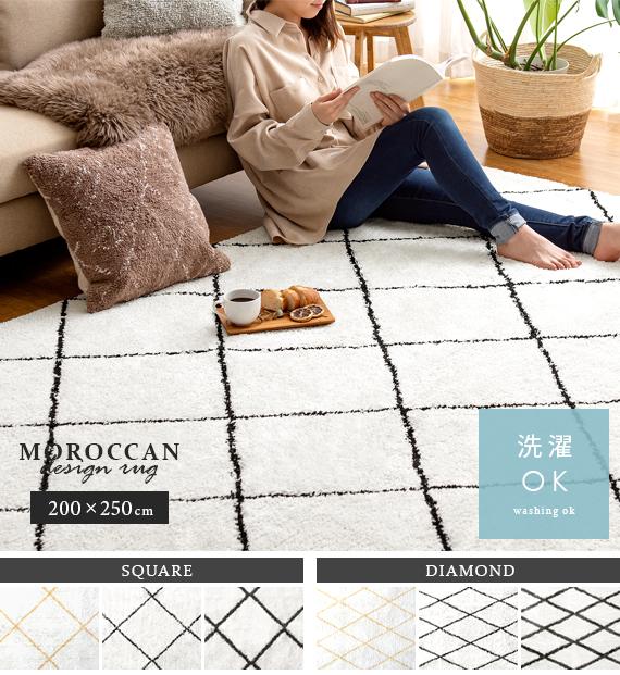 ベニワレン風モロッカンデザインラグ 200×250cm / シンプルで素朴でありながら高いデザイン性が、近年世界から注目されている、「ベニワレンラグ」。そのベニワレンにインスパイアされたこちらのラグ。四季のある日本でも過ごしやすいよう、1年中快適なマイクロファイバーで仕上げました。味わい深いモロッカンデザインはそのままに、日本の気候での居心地の良さを追求した、フワさら気持ちいいこだわりのシャギーラグとなっております。