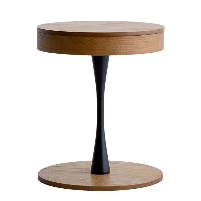 エッジを落とした丸型の天板に、すっきりとした細身の柱を組み合わせたシンプルなデザインが、場所を選ばず幅広いシーンでお使いいただけます。