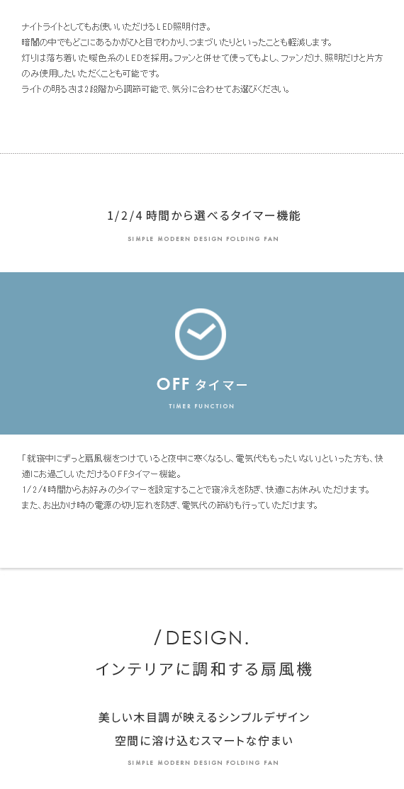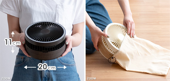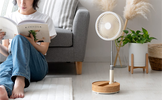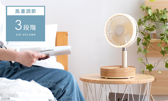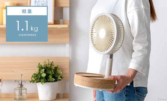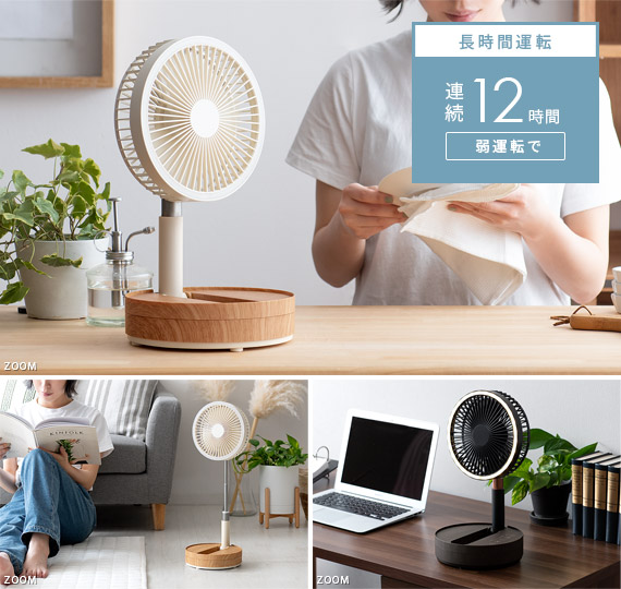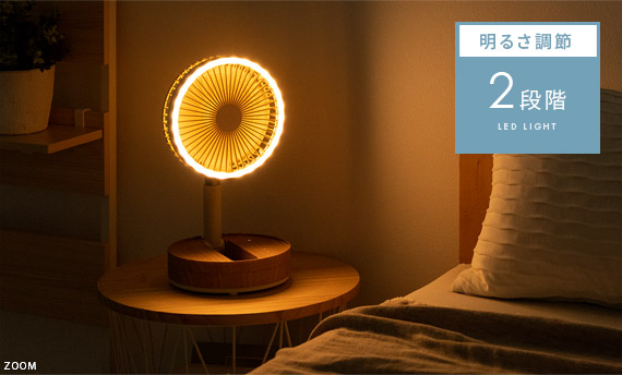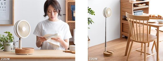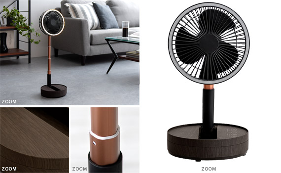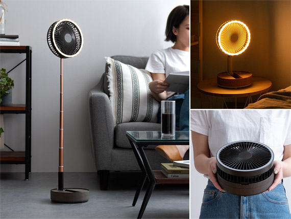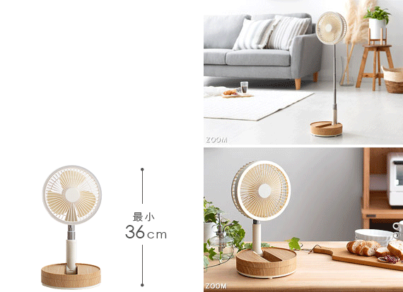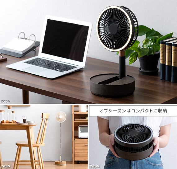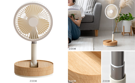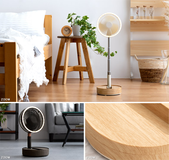 扇風機 コードレス 伸縮 折りたたみ LED付き シンプル おしゃれ 木目 ウッド調 アイボリー ブラウン
