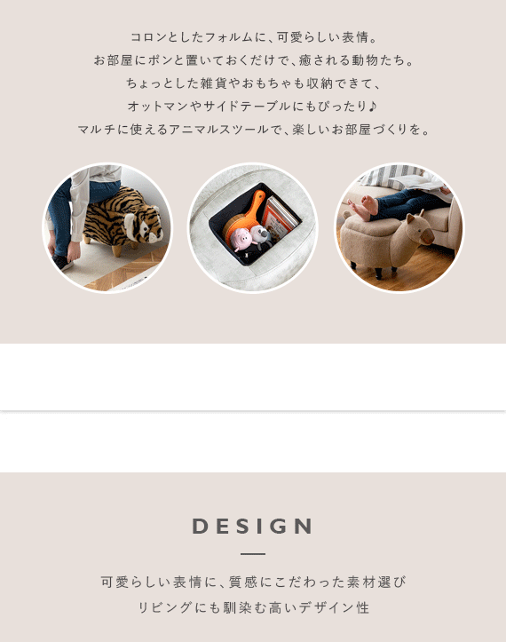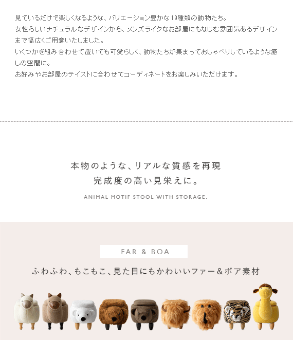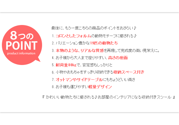 [Mサイズ] 収納付きアニマルスツール ANIMO(アニモ) Aタイプ