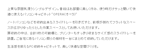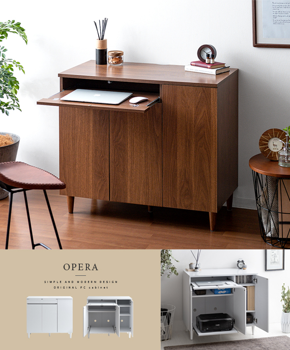 上質な雰囲気漂うシンプルデザイン。普段はお部屋に美しく佇み、使う時だけサッと開いて快適に使えるパソコンキャビネット"OPERA(オペラ)"