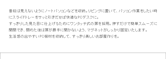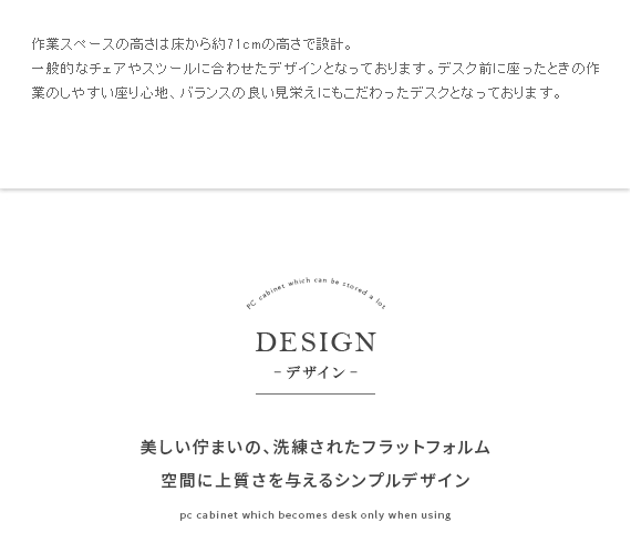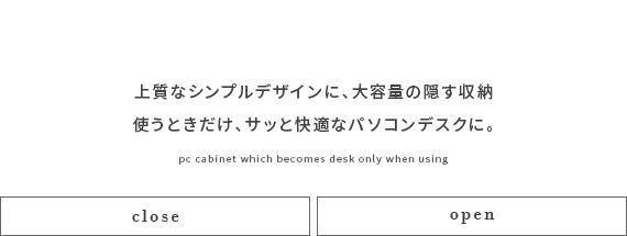 普段はお部屋に美しく佇み、使う時だけサッと開いて快適に使えるパソコンキャビネット