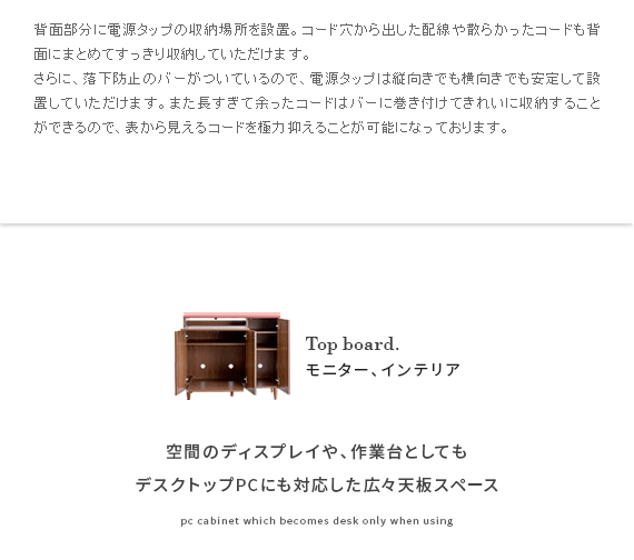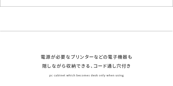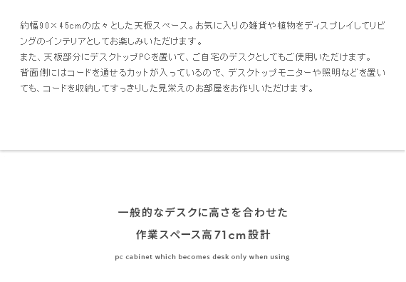 また、天板部分にデスクトップPCを置いて、ご自宅のデスクとしてもご使用いただけます。