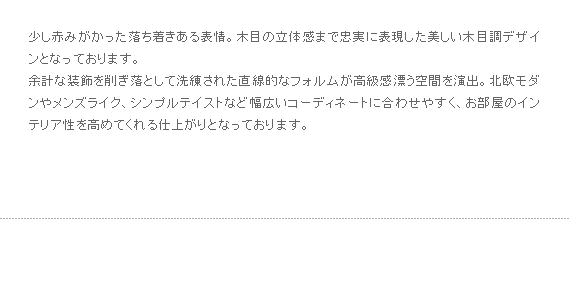 少し赤みがかった落ち着きある表情。木目の立体感まで忠実に表現した美しい木目調デザインとなっております。