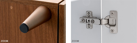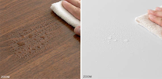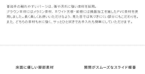 ブラウンにはメラミン素材、ホワイトには鏡面加工を施したPVC素材を使用しました。