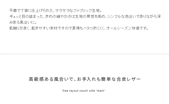 関連カテゴリ: ソファ > 3人掛けソファ | ソファ > カウチ・コーナーソファ | ソファ > フロアソファ・ローソファ | ソファ > ファブリック・布張りソファ | ソファ > 革・合皮・レザーソファ | オリジナル家具 > ソファ(オリジナル家具)
