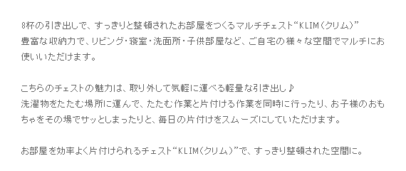 マルチチェスト KLIM〔クリム〕8杯タイプ [幅80/4段x2列] /8杯の引き出しで、すっきりと整頓されたお部屋をつくるマルチチェスト“KLIM(クリム)”豊富な収納力で、リビング・寝室・洗面所・子供部屋など、ご自宅の様々な空間でマルチにお使いいただけます。こちらのチェストの魅力は、取り外して気軽に運べる軽量な引き出し♪洗濯物をたたむ場所に運んで、たたむ作業と片付ける作業を同時に行ったり、お子様のおもちゃをその場でサッとしまったりと、毎日の片付けをスムーズにしていただけます。お部屋を効率よく片付けられるチェスト“KLIM(クリム)”で、すっきり整頓された空間に。