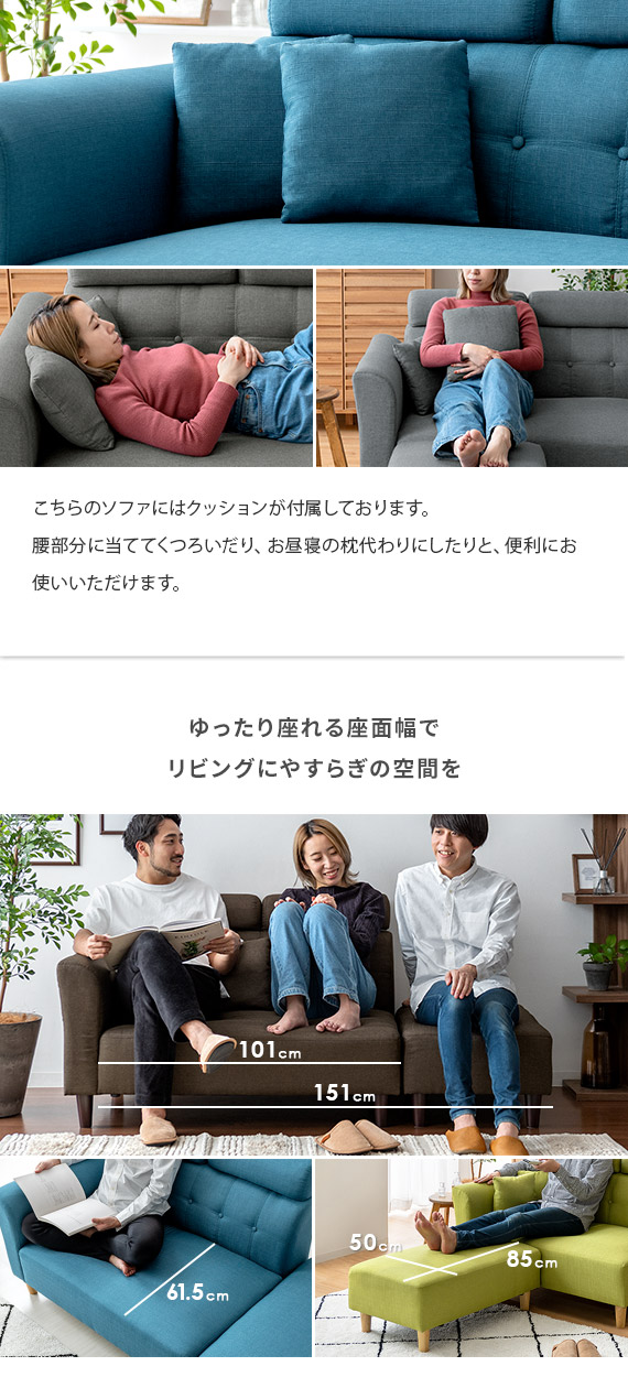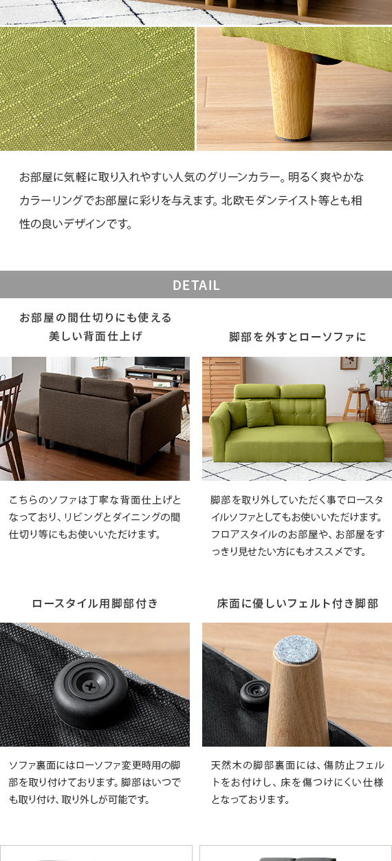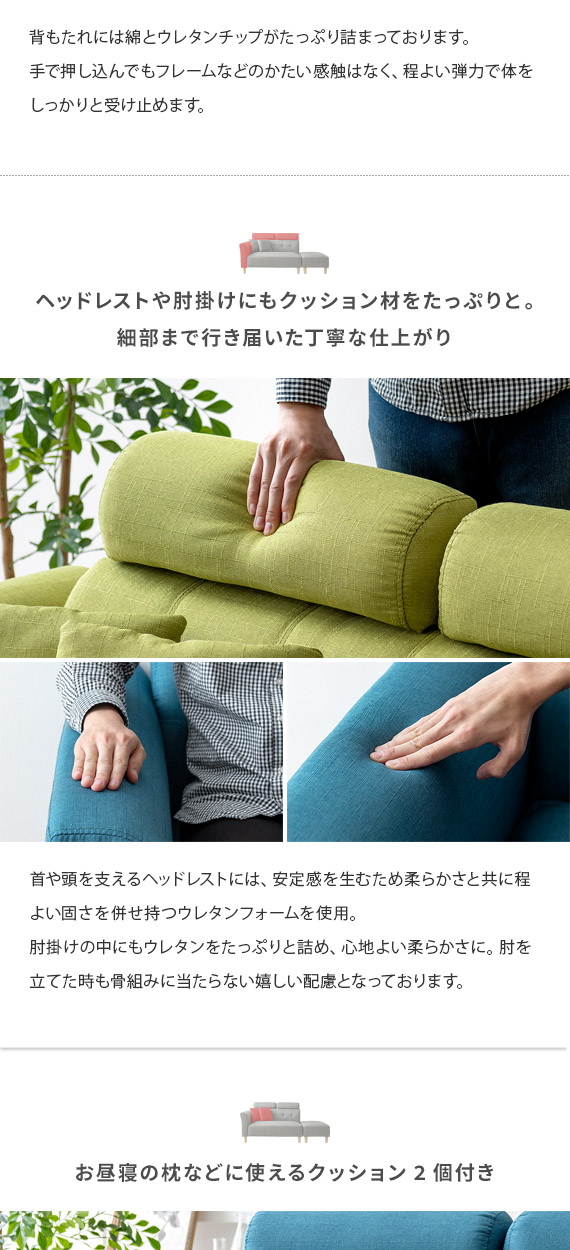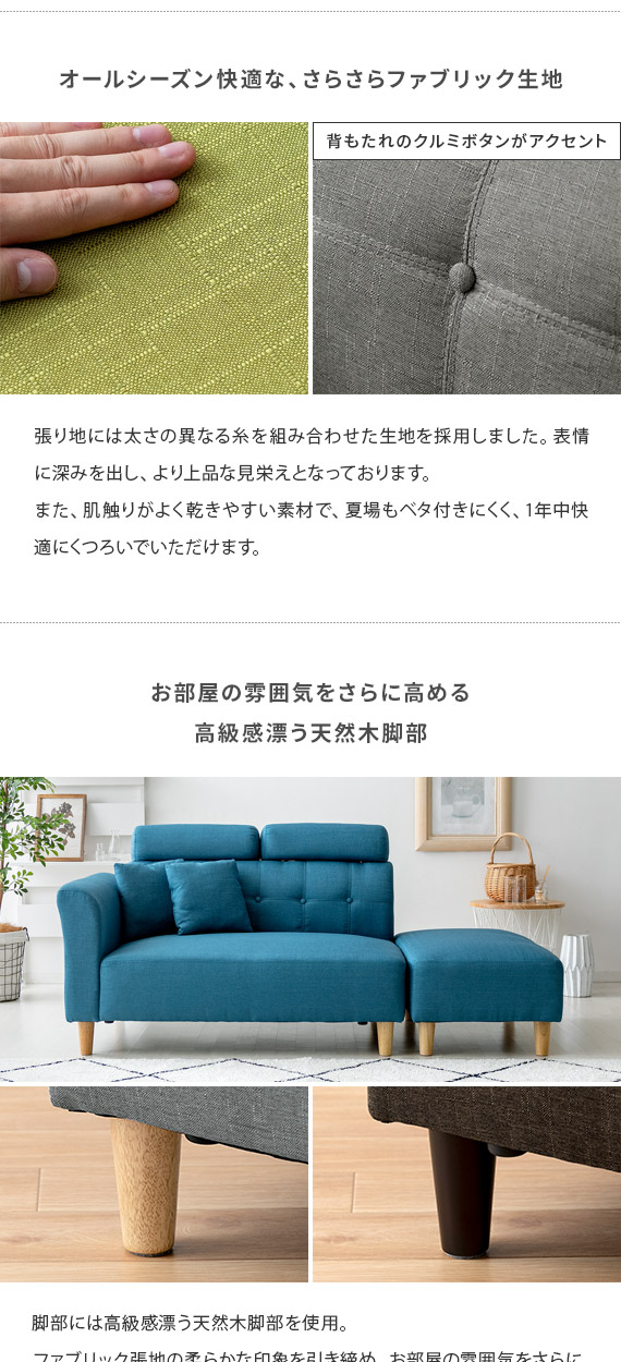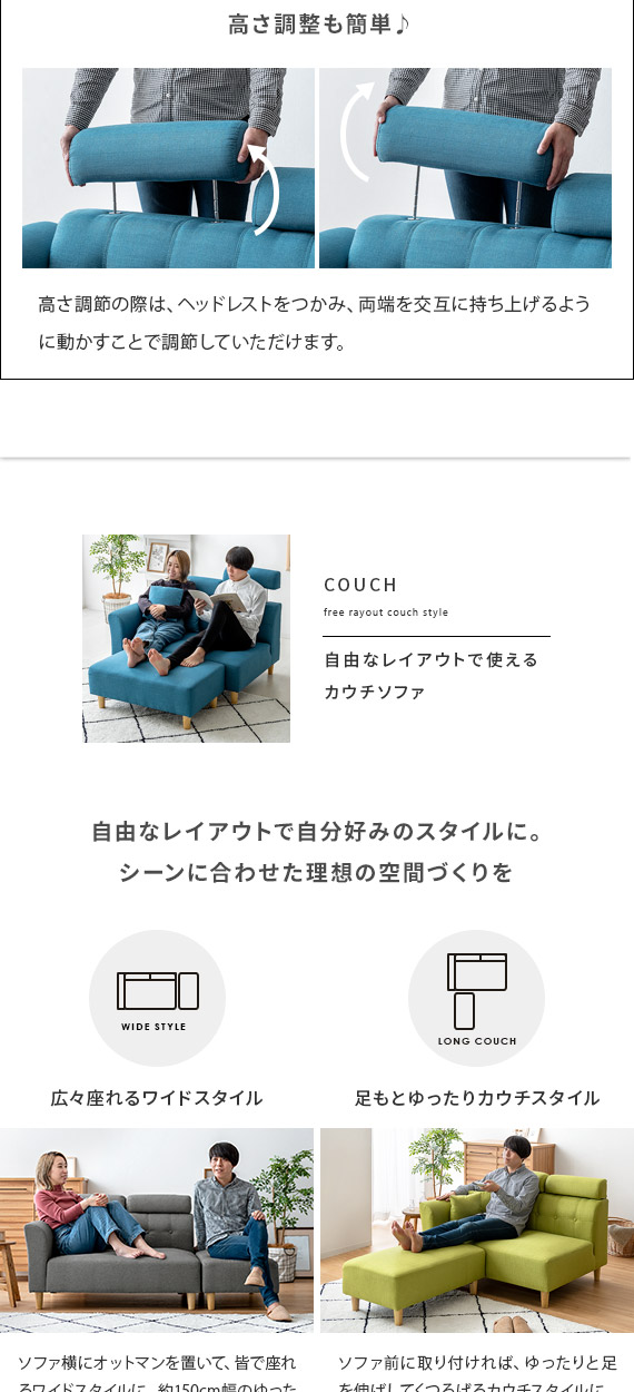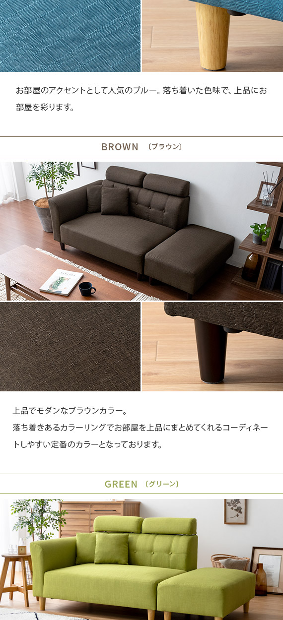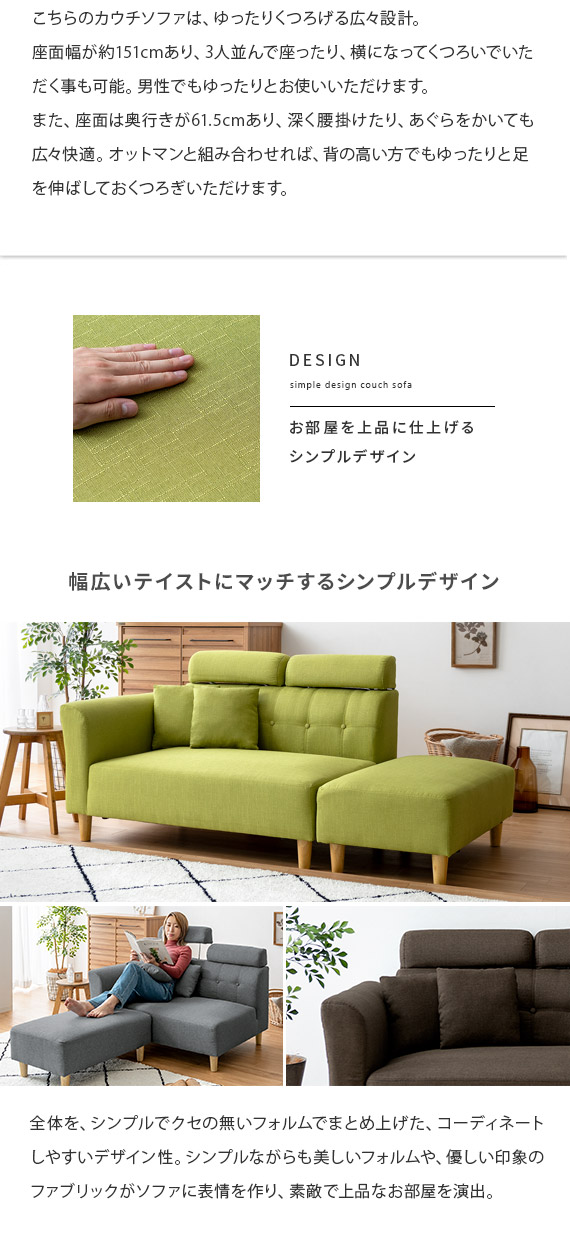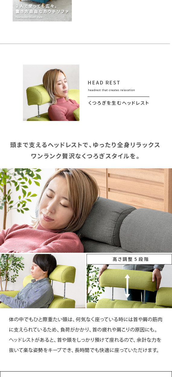 [幅166] ヘッドレスト付きカウチソファ NORA〔ノーラ〕