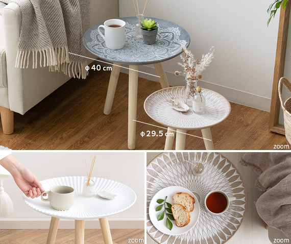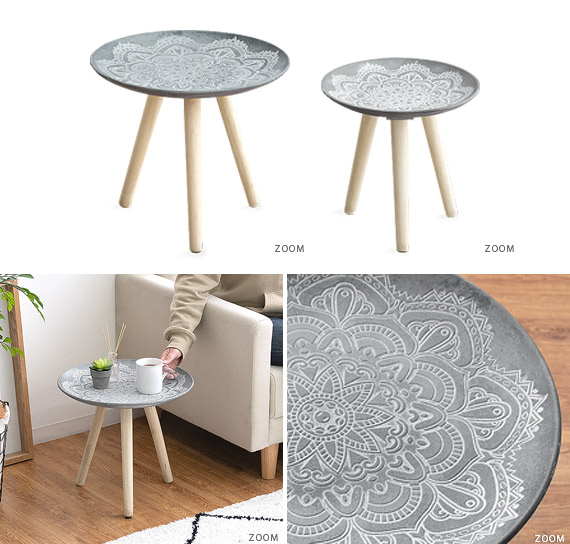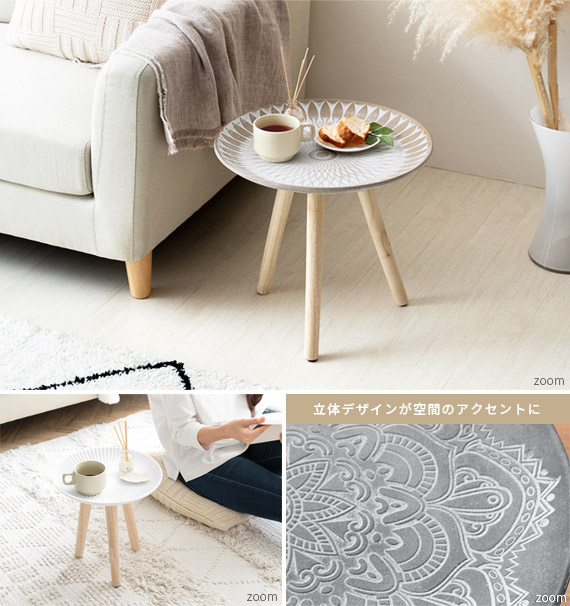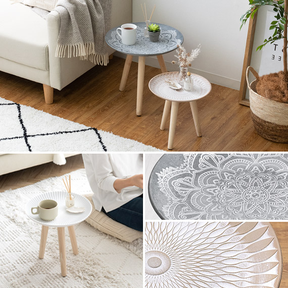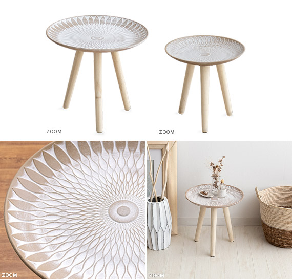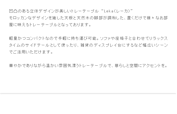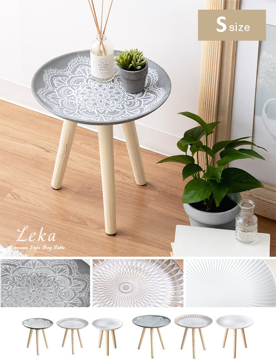 トレーテーブル Leka(レーカ) Sサイズ/凹凸のある幾何学模様が美しいトレーテーブル ”Leka(レーカ)”モロッカンな模様を施した天板と天然木の脚部が調和した、置くだけで様々なお部屋に映える高いデザイン性となっております。軽量かつコンパクトなので手軽に持ち運び可能。ソファや座椅子と合わせてリラックスタイムのサイドテールとして使ったり、雑貨のディスプレイ台にするなど幅広いシーンでご活用いただけます。華やかでありながら温かい雰囲気漂うトレーテーブルで、暮らしと空間にアクセントを。