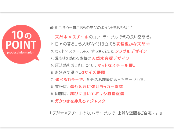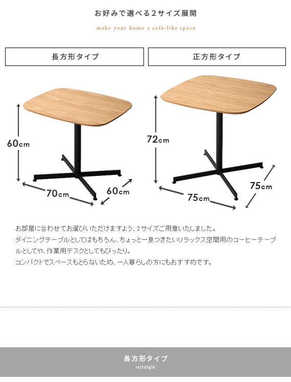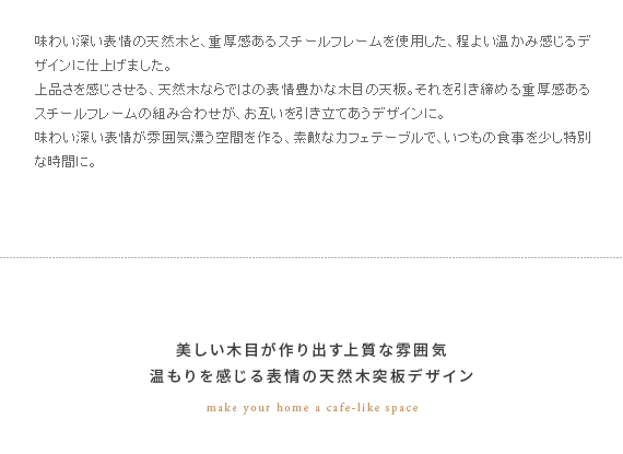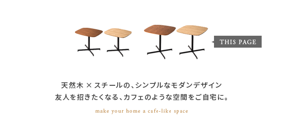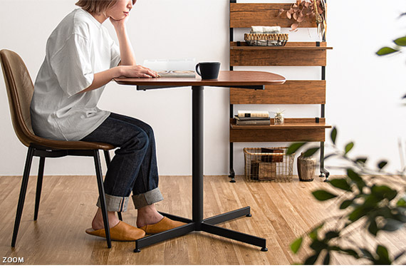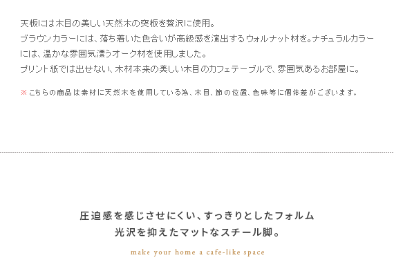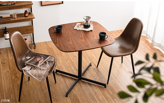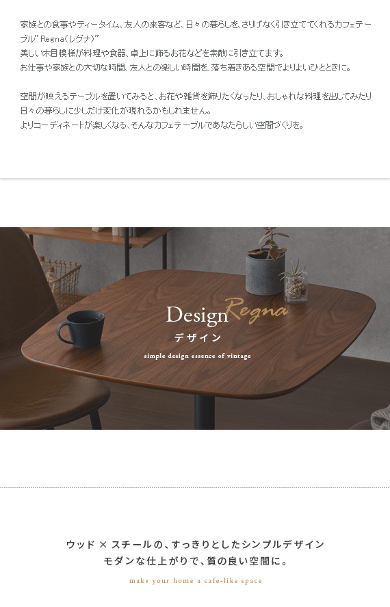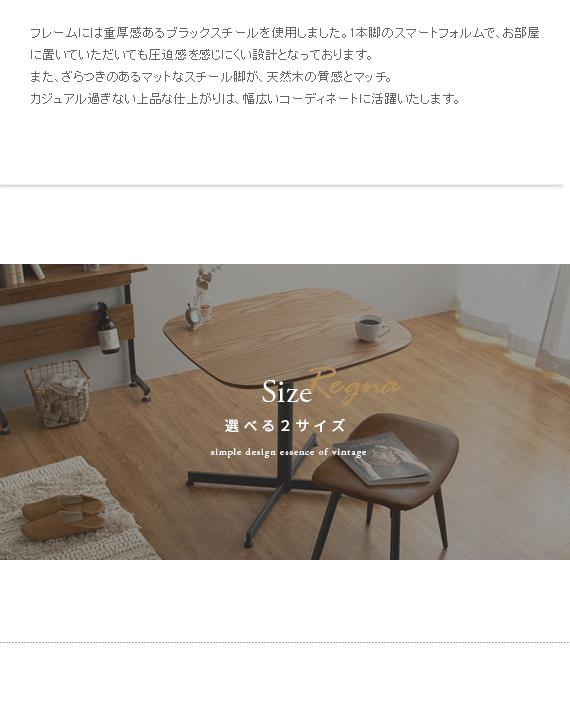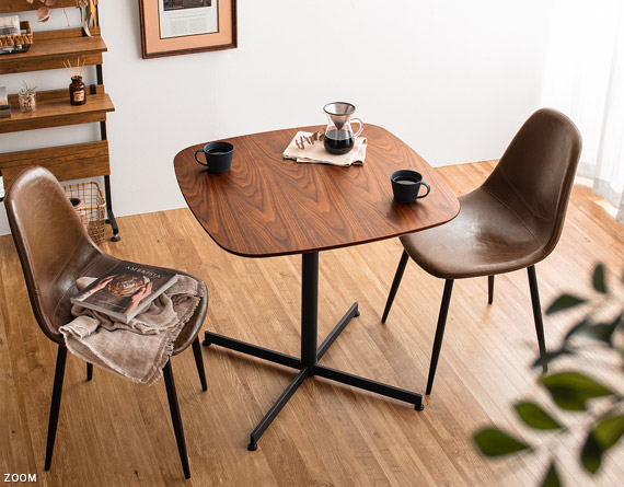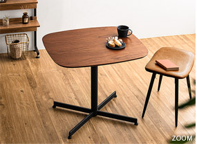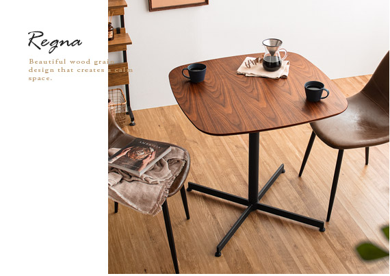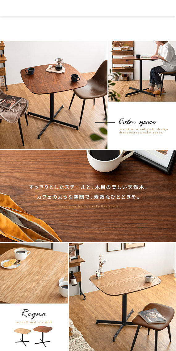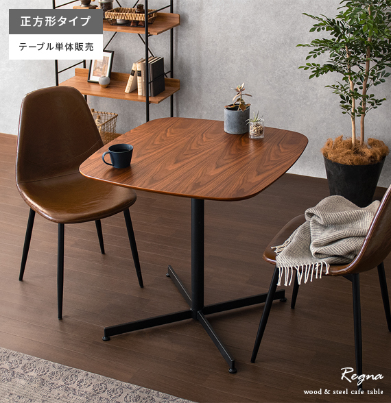 カフェテーブル Regna〔レグナ〕 正方形タイプ 75×75cm/木目が美しい天然木と、全体を引き締めるスチールの異素材MIXが、カフェのような空間を作るカフェテーブル“Regna(レグナ)”天板のウッド素材は天然木を贅沢に使用しました。天然木ならではの表情豊かな木目の天板。それを引き締めるブラックスチールの脚部が、お互いを引き立てあうデザインに。また、コンパクトなサイズ感と1本脚のすっきりとしたデザインで、ワンルームにも置いていただきやすくなっております。置くだけでカフェのような雰囲気にしていただけるカフェテーブルで、素敵な空間をご自宅に。