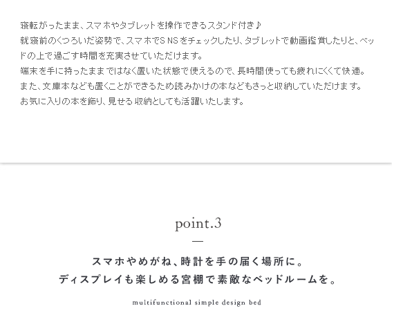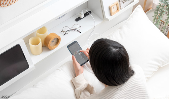 就寝前のくつろいだ姿勢で、スマホでSNSをチェックしたり、タブレットで動画鑑賞したりと、ベッドの上で過ごす時間を充実させていただけます。