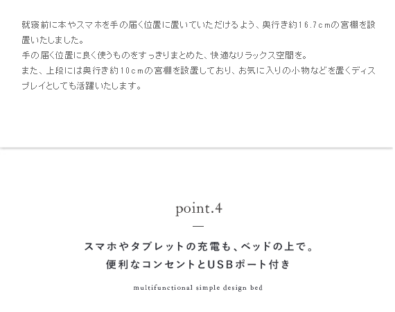 就寝前に本やスマホを手の届く位置に置いていただけるよう、奥行き約16.7cmの宮棚を設置いたしました。