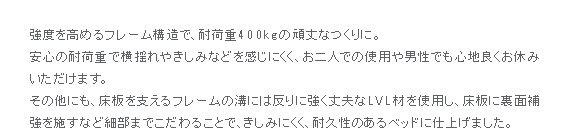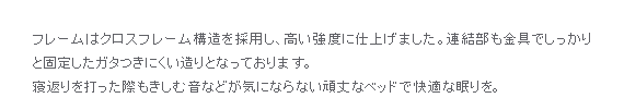 安心の耐荷重で横揺れやきしみなどを感じにくく、心地良くお休みいただけます。