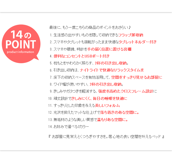 豊富な機能性と収納力にさらに高い耐久性を兼ね備えたベッドで、快適な空間に。