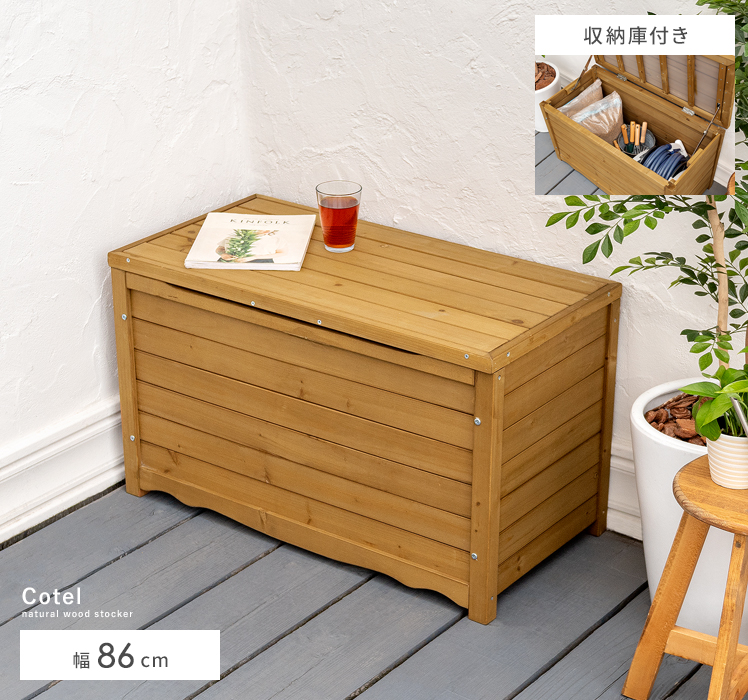 [幅86] 天然木ベンチストッカー Cotel 〔コテル〕