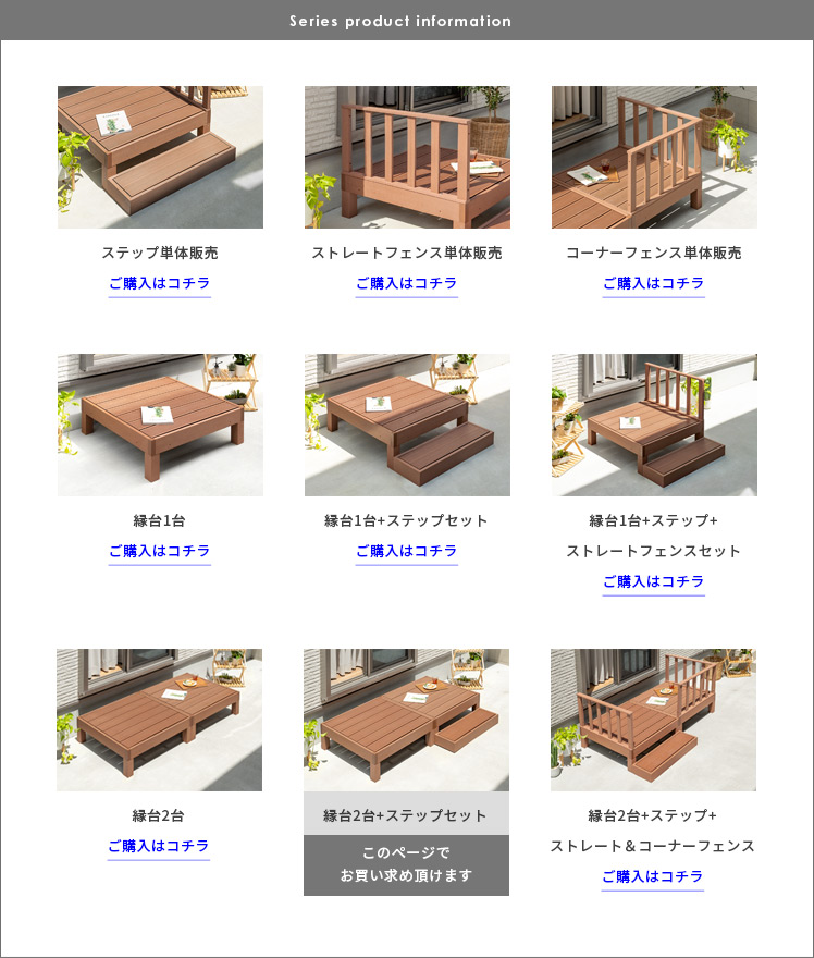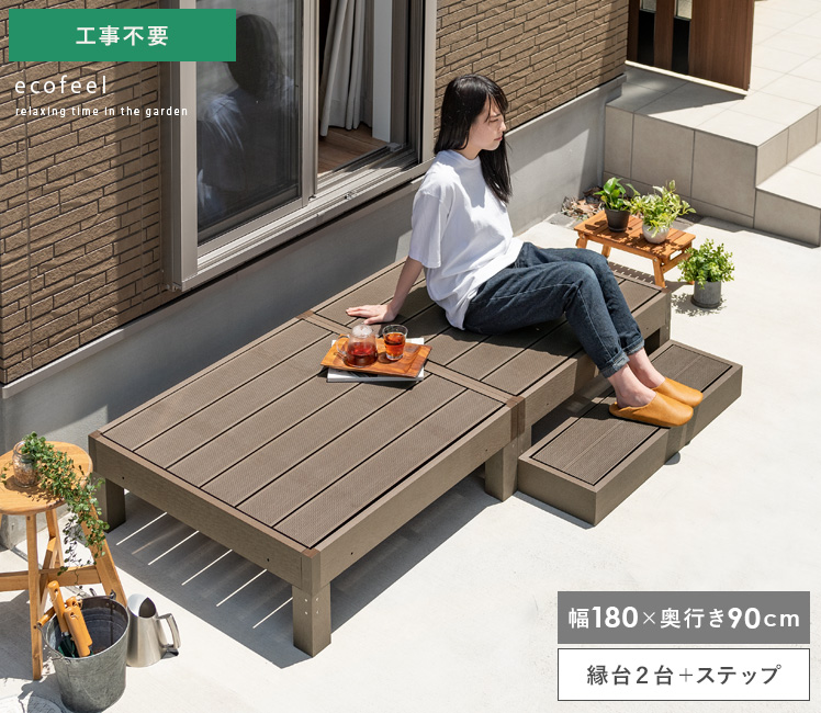 人工木ウッドデッキ ecofeel(エコフィール)縁台2台+ステップセット