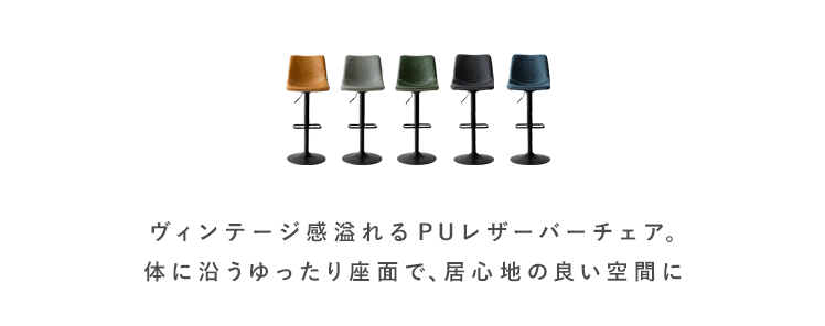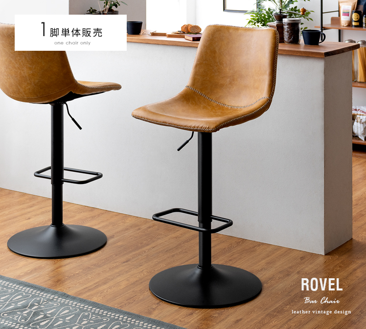 味のある表情のPUレザーを使用した、ヴィンテージ感溢れるバーチェア