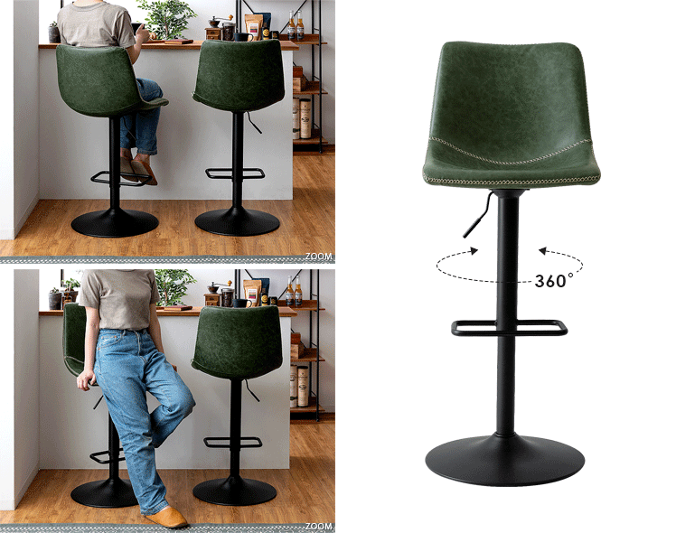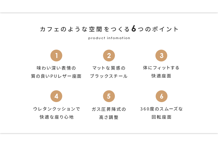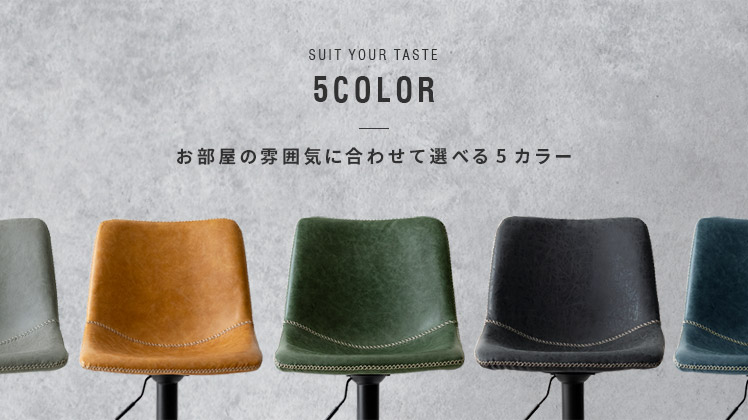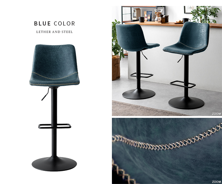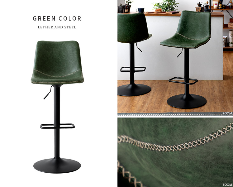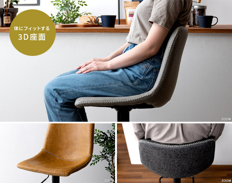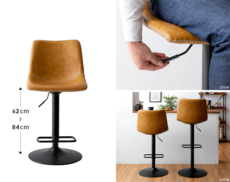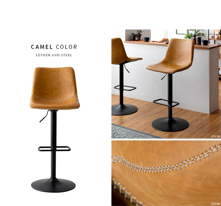 ヴィンテージ加工を施したPUレザー座面と、重厚感あるブラックスチール脚部の組み合わせが、カフェのような雰囲気あるカウンター空間を演出いたします。