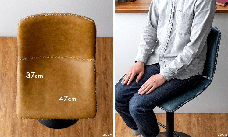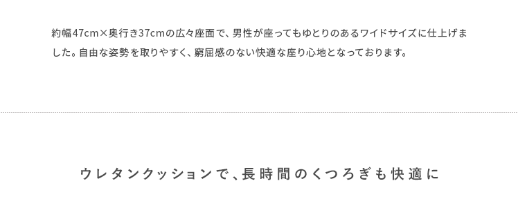 約幅47cm×奥行き37cmの広々座面で、男性が座ってもゆとりのあるワイドサイズに仕上げました。
