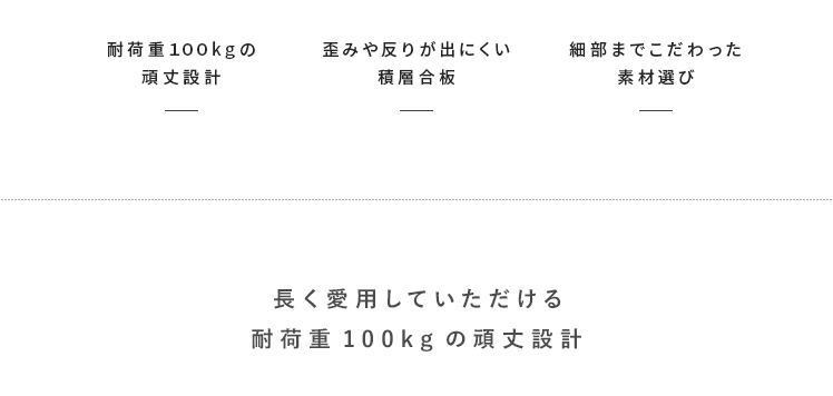 長く愛用していただける、耐荷重100kgの頑丈設計