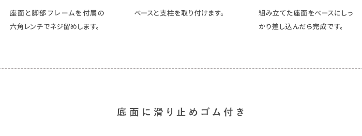 座面と脚部フレームを付属の六角レンチでネジ留めします。