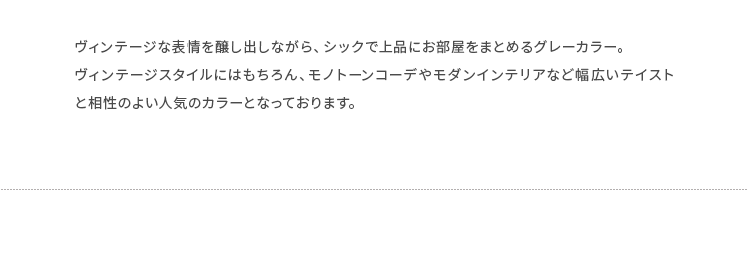 ヴィンテージな表情を醸し出しながら、シックで上品にお部屋をまとめるグレーカラー。