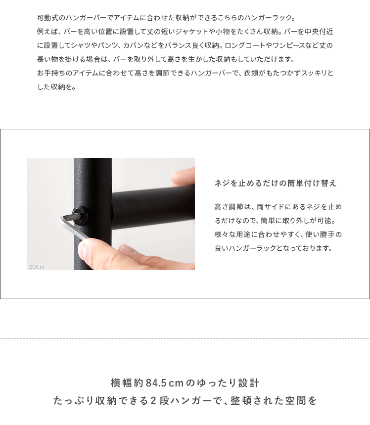 ポール可動式 2段 衣類 洋服 収納