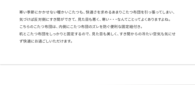 ※こたつ掛け布団のみ単体販売となっております。こたつ本体は付いておりません。