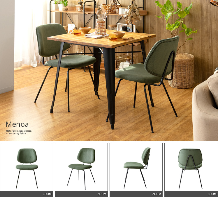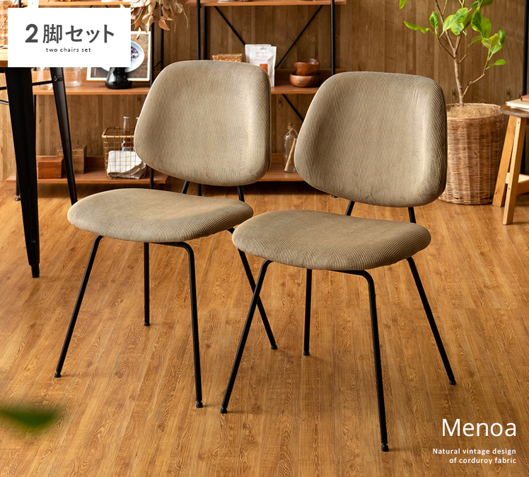 ダイニングチェア Menoa〔メノア〕 肘掛けなしタイプ 2脚セット販売/ナチュラルヴィンテージ感漂う、ラフな印象のコーデュロイダイニングチェア”Menoa(メノア)”豊かさを感じさせる、しっかりと厚みを持たせた背もたれと座面が質の良い空間を演出。また、丸みを帯びたフォルムやコーデュロイ生地のふんわりとした質感が、ヴィンテージな中にも柔らかさを感じさせるデザインに。座面と背もたれには弾力性のあるウレタンクッションをたっぷりと詰め込み、長時間座っても快適な座り心地を実現しました。デザインと快適性を兼ね備えたチェアで、ダイニングでの時間をよりよいひとときに。