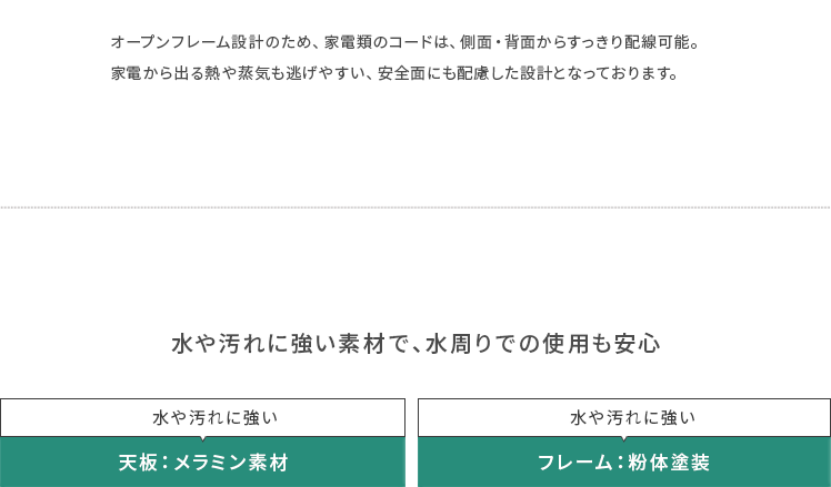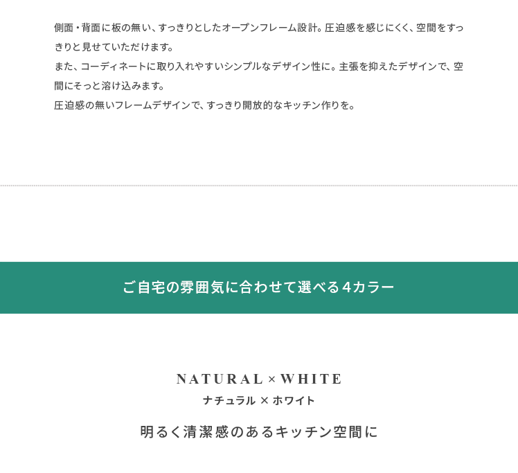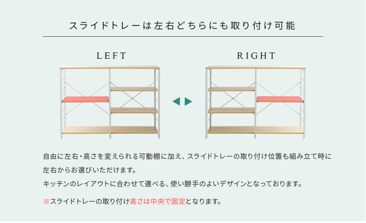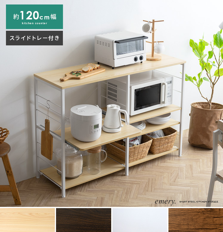 [幅120] スライド棚付きキッチンカウンター emery(エメリー) 背板なしタイプ