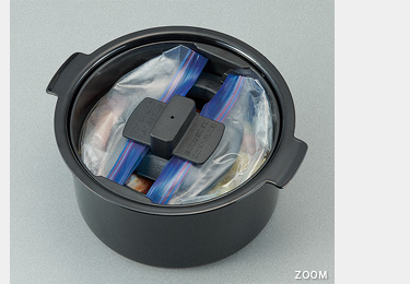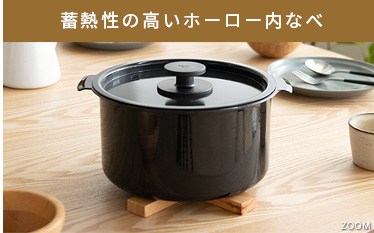 内なべには蓄熱性の高い「ホーローなべ」を使用。しっかりと味が染み込み、手間をかけたような味わいを作ります。直火対応など、融通が効くのもポイントです。