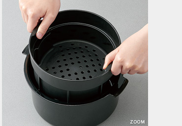 パック調理用のホルダーは、蒸し台としても活用可能です。温度調理コースで、蒸し野菜やシュウマイ・小籠包などの蒸し料理も作っていただけます。