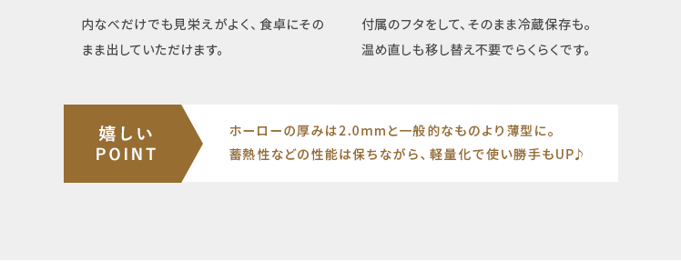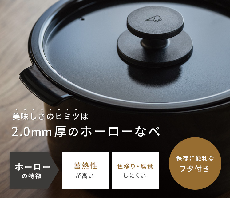 美味しさのヒミツは、2.0mm厚のホーローなべ