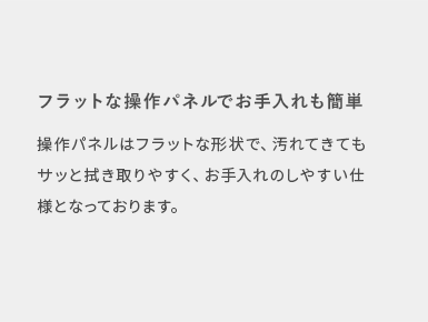 操作パネルはフラットな形状で、汚れてきてもサッと拭き取りやすく、お手入れのしやすい仕様となっております。