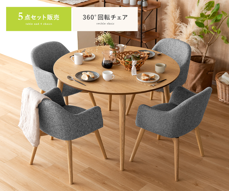 円形ダイニングテーブル&回転式チェア5点セット