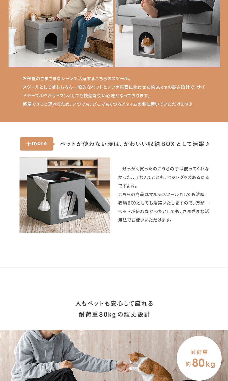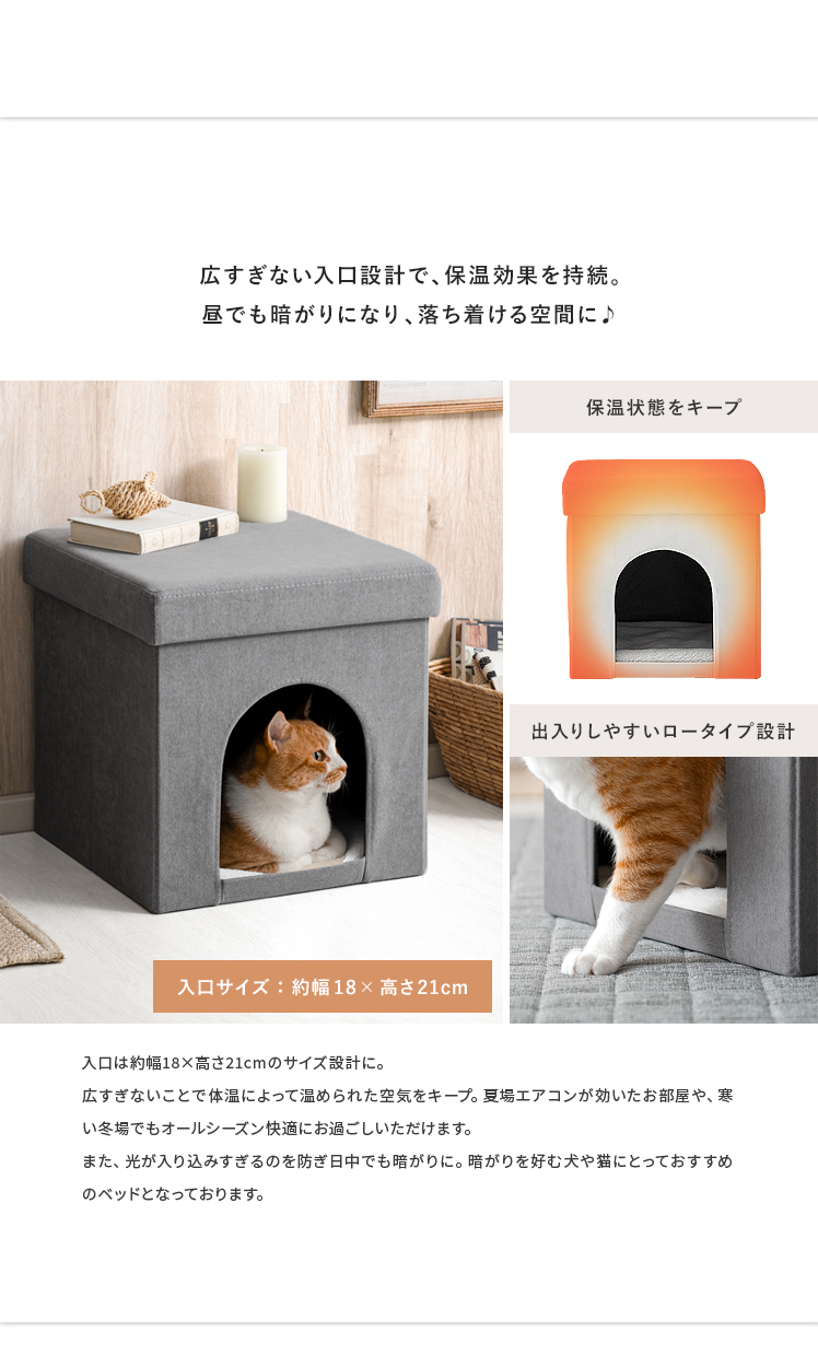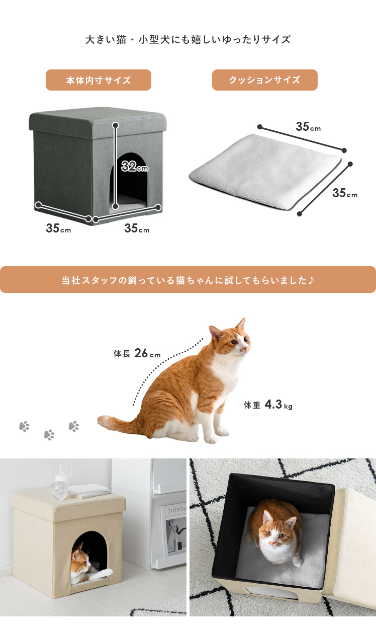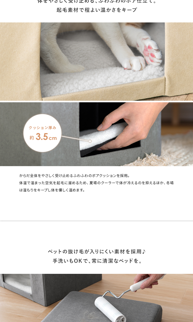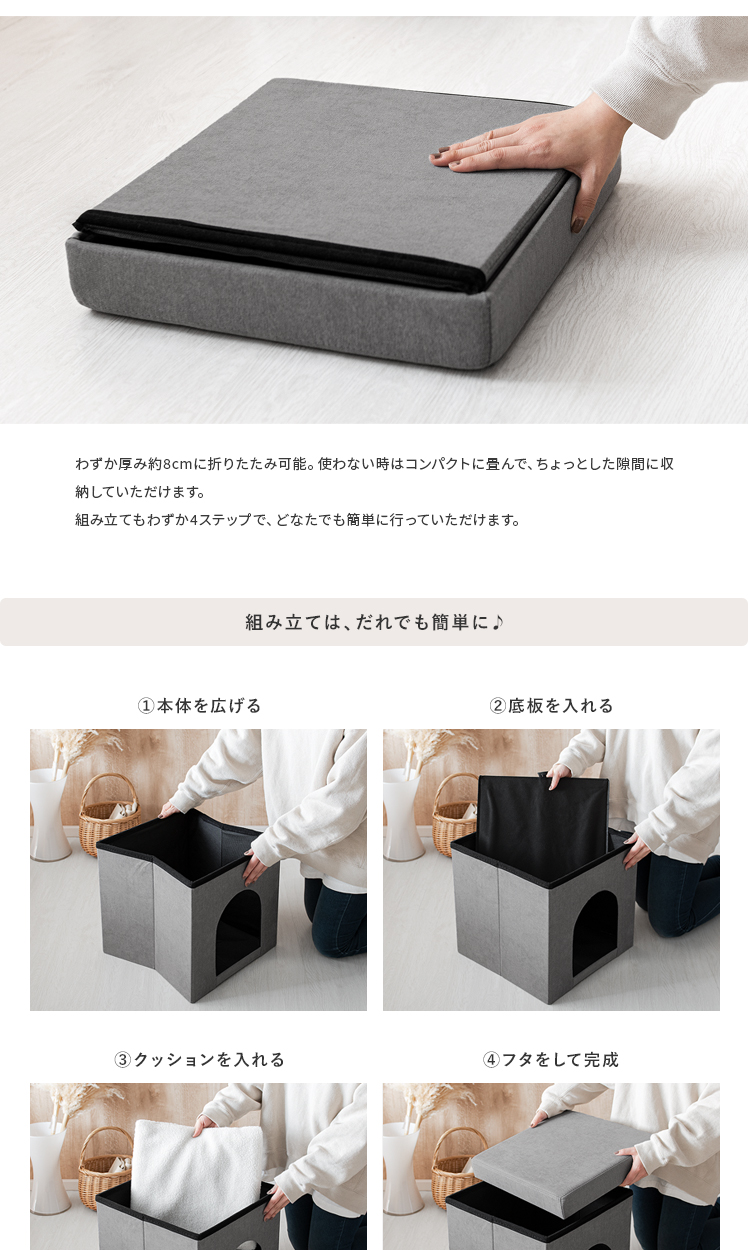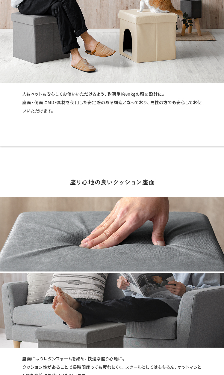 ペットハウススツール/ペットとくつろぎタイムを共有できる、スツールにもなるペットハウス。大切なペットのため快適性にこだわりました。フォルムは狭い空間が落ち着くペットの習性に合わせキューブ型に。体に触れる生地には、さらっとした肌触りのファブリック生地と、ふわふわのボアクッションを採用。快適な上、見た目も品があるので、お部屋にもすっと馴染みます。また、スツールとしての快適性もばっちり。ウレタンクッション座面と、安心して使える約80kgの高耐荷重設計となっております。「快適に、空間もおしゃれに」のこだわりデザインで、ペットとの暮らしをより豊かに、身近に。