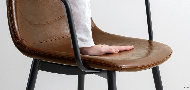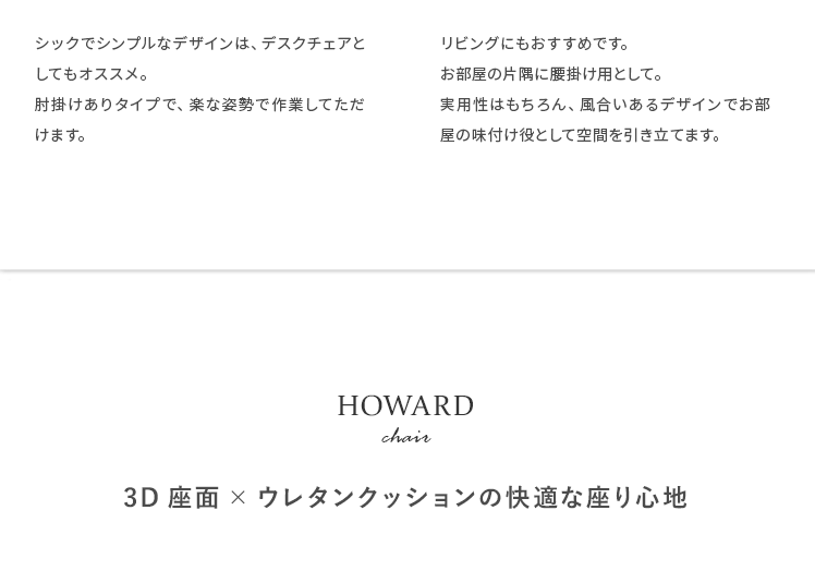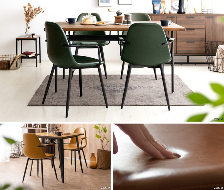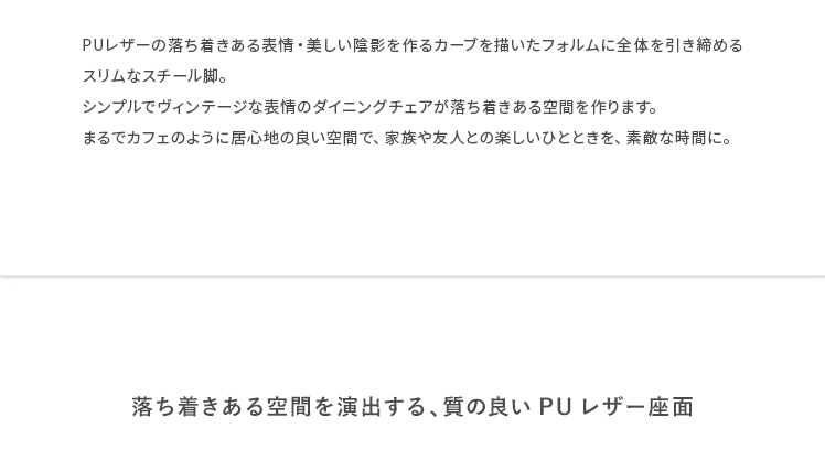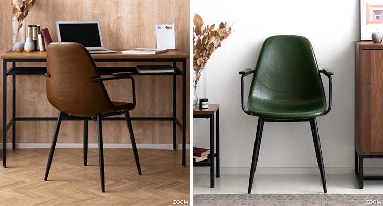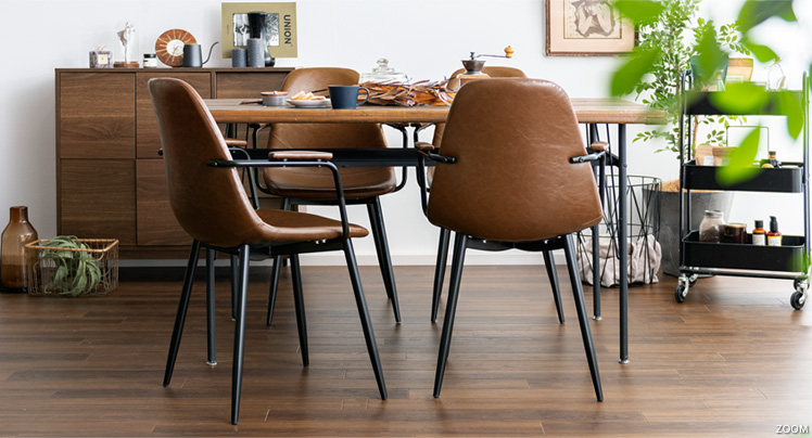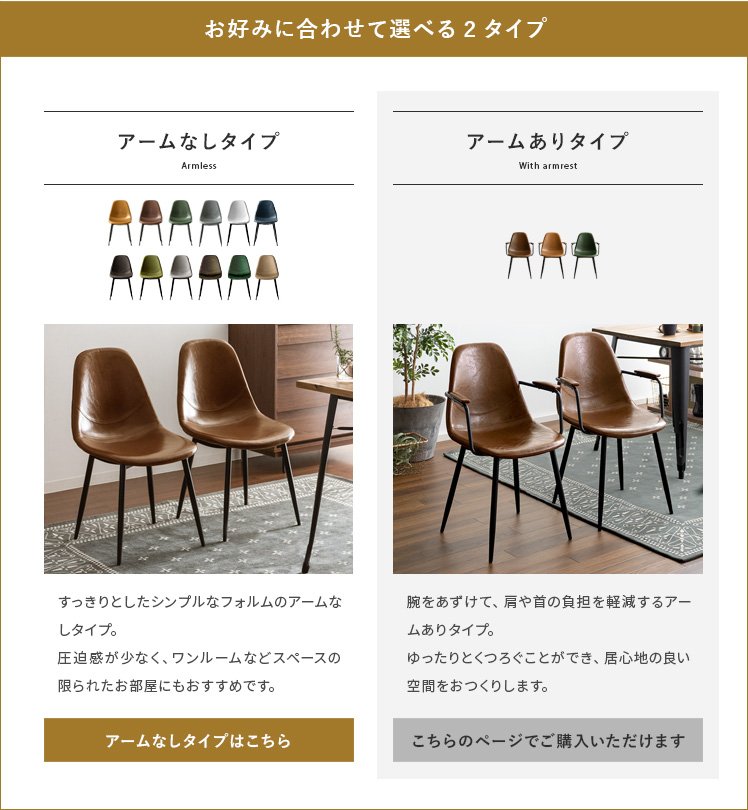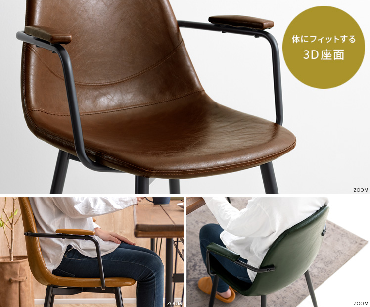 HOWARD CHAIR〔ハワードチェア〕 アーム付きタイプ 2脚セット販売/落ち着きある質の良い空間を演出する、ヴィンテージチェア"HOWARD(ハワード)"快適な姿勢ゆったりくつろげる、肩や首への負担も少ないアームタイプが登場しました。レザー特有のシワ感までが再現されているPUレザー生地と、スリムなブラックスチール脚部の組み合わせがセンスの良いダイニング空間を演出します。座面は長時間でも快適な、体にフィットする3D座面を採用しました。落ち着きあるダイニングを作るチェア”HOWARD”で、家族や知人・友人との楽しいひと時をより素敵な時間に。