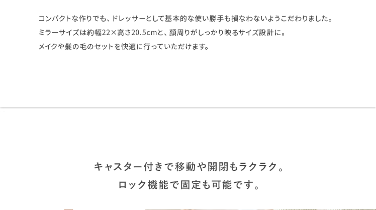 [本体完成品] コンパクトドレッサー キャスター付き 大容量