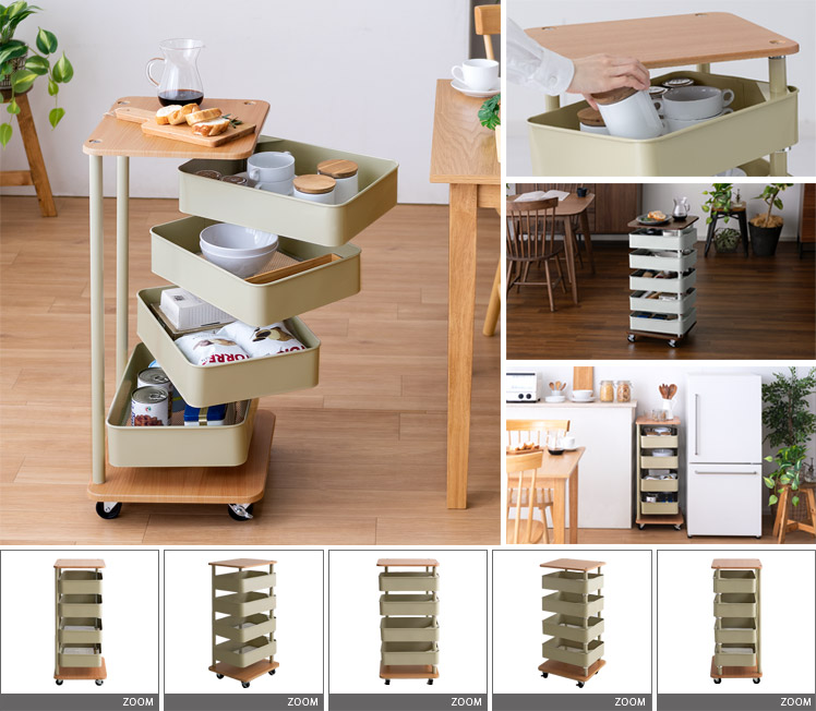 [幅39.5] liine 4段回転トレイワゴン Culri〔クルリ〕