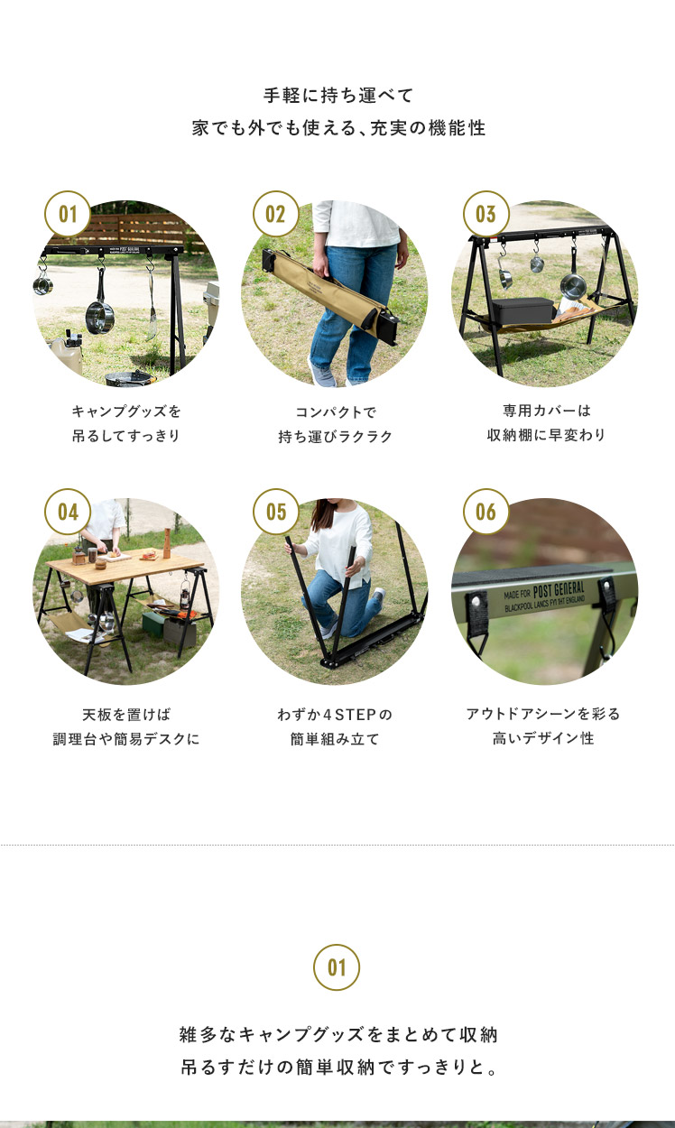ハンガーラック アウトドア キャンプ BBQ 作業台